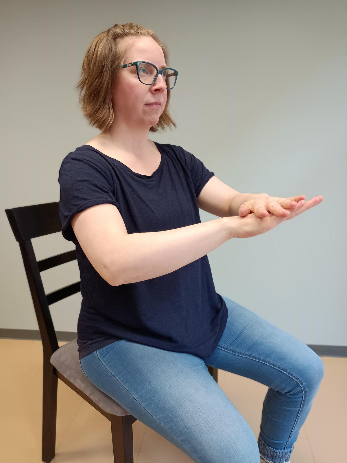 Oikea käsi taputtaa vasenta kämmenselkää ja toisinpäin
