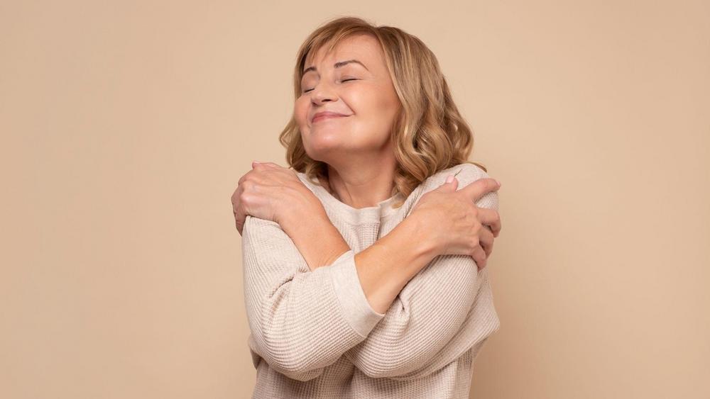 Peilistä sinua katsoo paras kaverisi eli sinä itse. On aika antaa parhaalle kaverillesi lämmin halaus. Kiedo siis käsivartesi ristiin ja halaa itseäsi. Voit samalla kevyesti heijata itseäsi puolelta toiselle. Hengitä syvään sisään aurinkoa ja hyvää oloa. Puhalla ulos kaikki huolet ja murheet. Anna itsellesi niin monta halausta kuin tuntuu hyvältä.