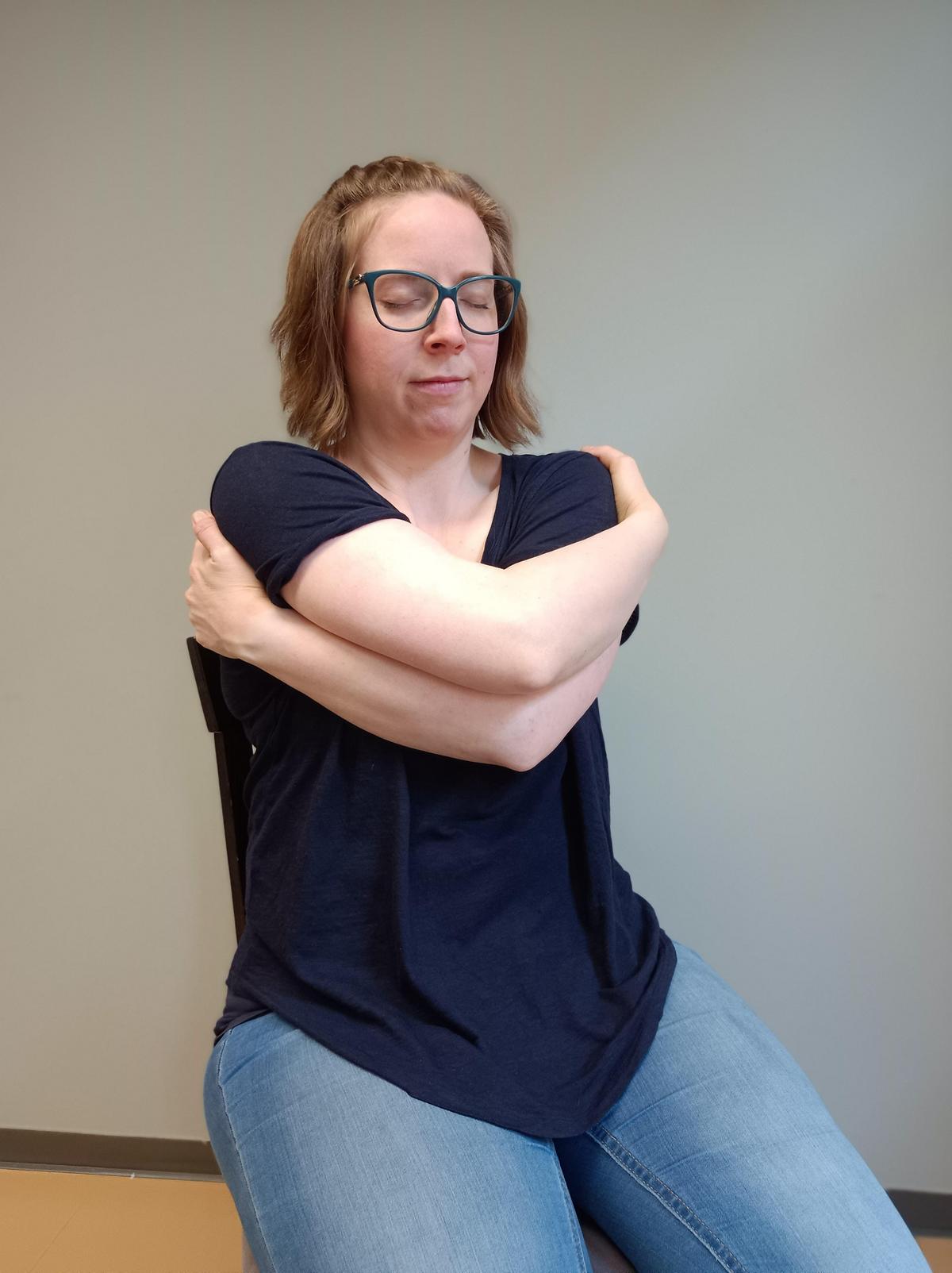 Peilistä sinua katsoo paras kaverisi eli sinä itse. On aika antaa parhaalle kaverillesi lämmin halaus. Kiedo siis käsivartesi ristiin ja halaa itseäsi. Voit samalla kevyesti heijata itseäsi puolelta toiselle. Hengitä syvään sisään aurinkoa ja hyvää oloa. Puhalla ulos kaikki huolet ja murheet. Anna itsellesi niin monta halausta kuin tuntuu hyvältä.