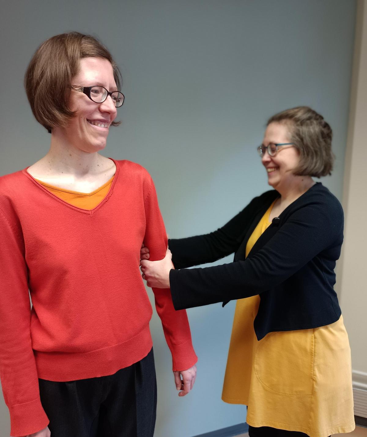 Rentouta sitten toinenkin käsivarsi puristelemalla. Vaihtakaa osia.