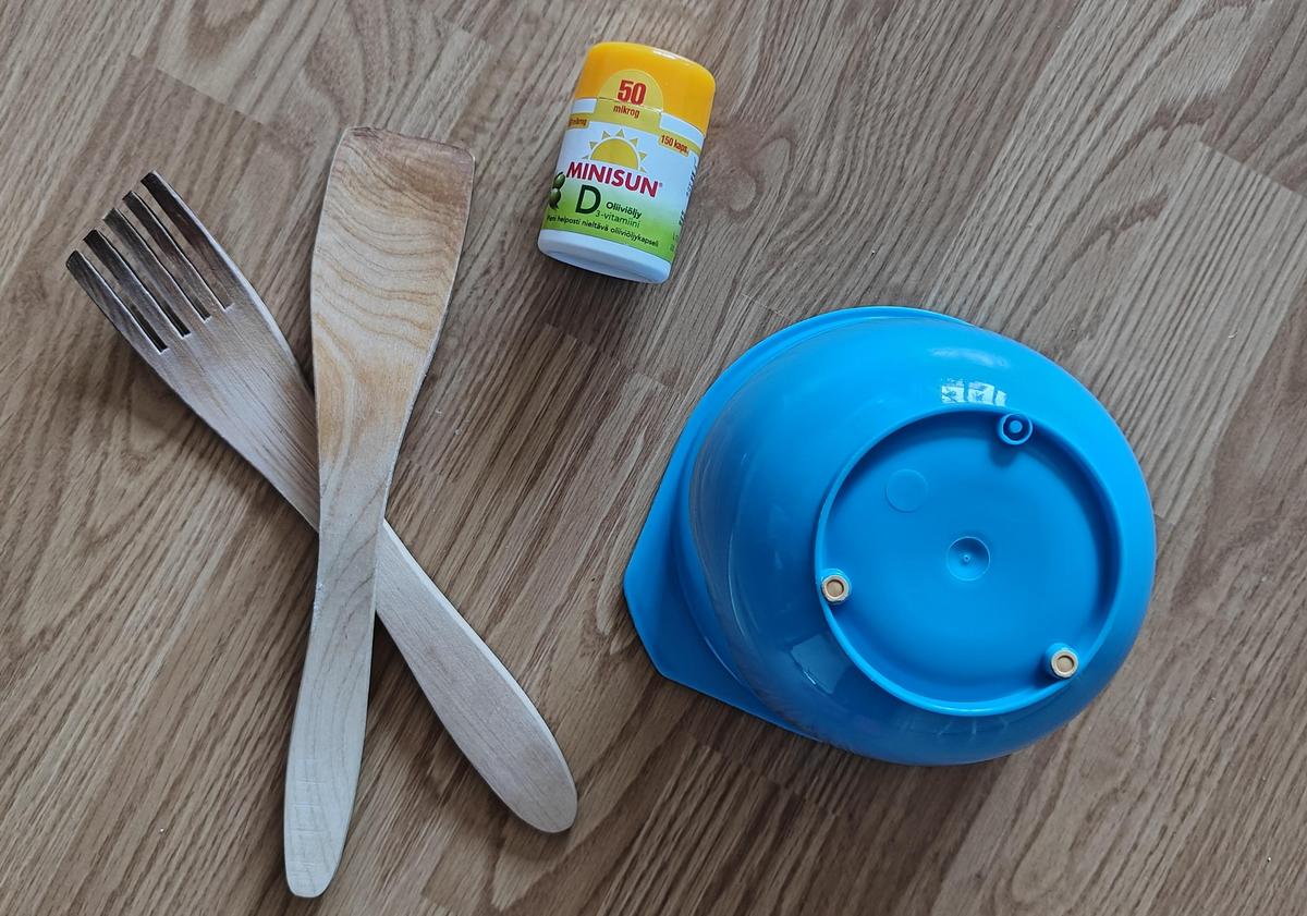Ota itsellesi soittimeksi jokin kodin esine, kuten ämpäri, muovikulho tai kattila. Myös puiset tai muoviset kauhat ja lastat, aterimet tai kertakäyttöastiat sopivat tähän tehtävään hyvin. Heliseväksi soittimeksi käy pilleri- tai Hermesetas-purkki. Rummuta pöydän pintaa tai ämpärin pohjaa. Käytä mielikuvitustasi ja keksi itse lisää!