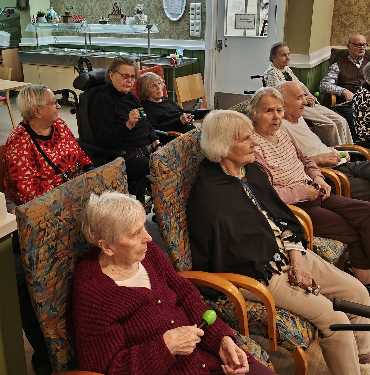Voitte laulaa tuttua laulua ja säestää itseänne rytmisoittimilla. Laulamisen ja soittamisen yhdistäminen aktivoi aivoja vahvasti. Voitte myös laittaa musiikkia soimaan ja soittaa mukana vapaasti. Kokeilkaa erilaisia musiikkityylejä!